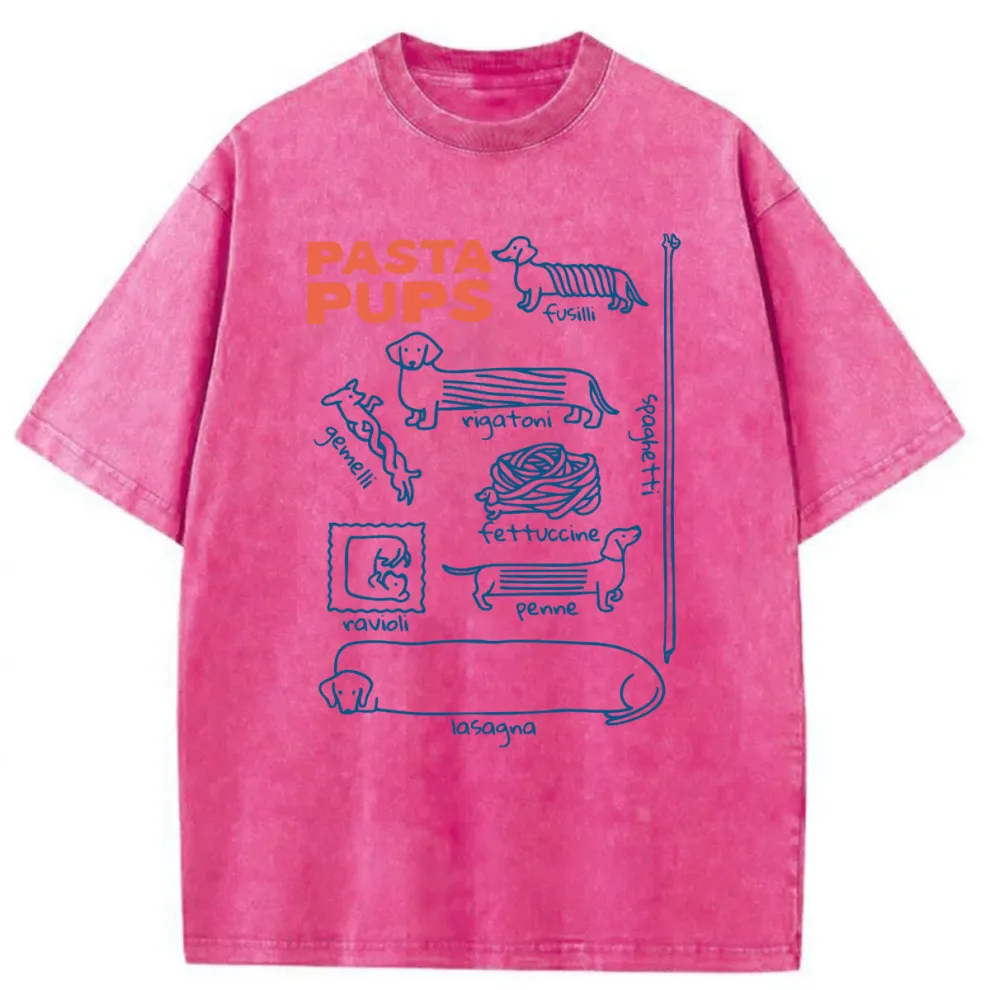TeeJays Pasta Pups Dachshunds As Pasta Types Washed T-shirt